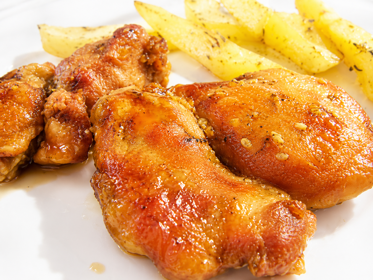 Pulpele de pui marinate la cuptor sunt un preparat delicios si aromat, perfect pentru mesele de zi cu zi sau pentru ocazii speciale. Fragede la interior si rumenite la exterior, acestea sunt imbogatite de un sos savuros pe baza de miere, mustar si condimente.